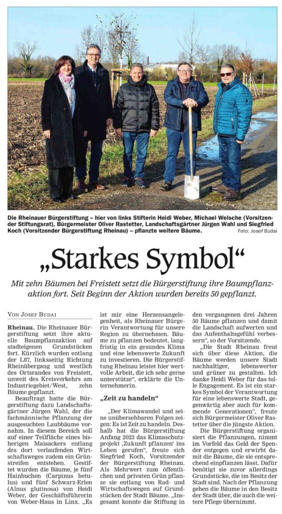 Die Bürgerstiftung Rheinau ist eine gemeinnützige, mildtätige Einrichtung von Rheinauerinnen und Rheinauern für die Menschen in der Stadt Rheinau. Sie strebt die Rolle der gesellschaftlichen Mitte Rheinaus an und will mit ihren Aktivitäten das Gemeinwesen stärken und einen Beitrag zur Identifikation der Bürger mit ihrem Gemeinwesen leisten.
